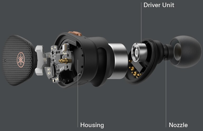 Hear legendary Yamaha audio engineering come to life. The driver, nozzle, airflow and acoustic space in the earbud housing are precision-optimized to deliver remarkably dynamic, well-balanced and spacious sound.