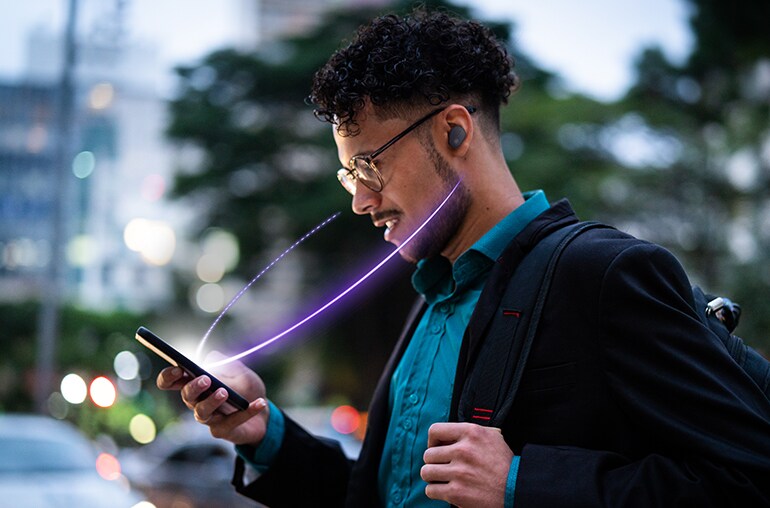 Earbud Nirkabel Sejati dengan Clear Voice Capture, Ambient Sound, dan Listening Care.