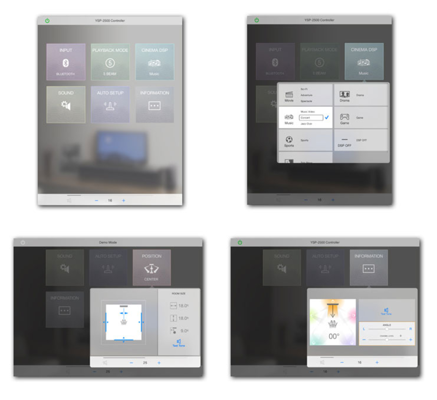 (4) Surround mode selection, offering expanded choices over the included remote control (for YAS-108, YAS-207, YAS-107, YAS-106, YAS-105, YAS-152, YAS-203, YAS-103, ATS-1080, ATS-2070, ATS-1070, ATS-1060, ATS-1050, ATS-1520, ATS-2030, ATS-1030, ATS-2020 and SRT-700)