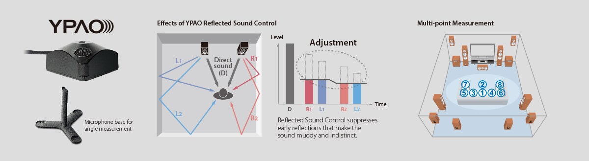 YPAO™-R.S.C. Sound Optimisation with 3D, 64-bit Precision EQ Calculation and Angle Measurement