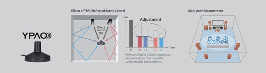 - YPAO R.S.C. (Reflected Sound Control) sound optimisation with multi-point measurement