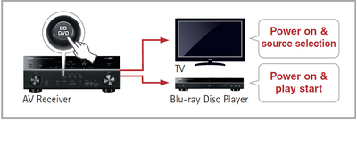 Another benefit of HDMI is the availability of CEC functionality. When the unit is connected to a CEC compatible TV, it will turn on and off together with the TV, and you can use the TV remote to control the volume. CEC also provides advanced functionality with other components. For example, you can use the receiver’s remote unit to control player functions like Skip and Stop.