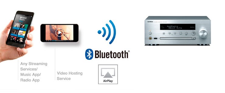 You can hear all the music sources from your smartphone via wireless Bluetooth or AirPlay connection. You can play music from music apps, radio apps, or YouTube™-type video hosting services.