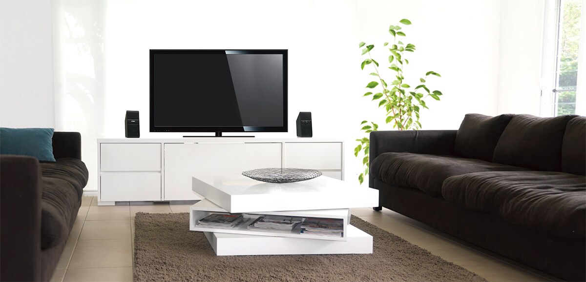 This is not your ordinary small speaker system. It's tuned to deliver maximum performance from every type of digital device. The unique cabinet shape prevents internal sound loss and gives the best possible frequency response. Plus, a bass port in the front pushes powerful bass sound straight out into the room, providing clear sound fields. There's even a loudness control that perfectly adjusts bass output to match the volume.