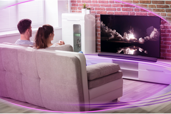 Tingkatkan pengalaman sinema rumah Anda dengan suara yang datang dari atas dan juga di sekitar Anda.