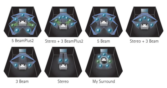 YSP-2200 mampu menghasilkan true surround sound dengan mengarahkan suara untuk memantul dari dinding, untuk kemudian mencapai pendengar dari berbagai arah. Mode utama adalah 5 BeamPlus2 untuk 7-sumber saluran. Dan masih ditambahkan, masih ada beberapa mode untuk mendengarkan yang tersedia. Anda dapat memilih 3 BeamPlus2 + Stereo, 5 Beam, Stereo + 3 Beam, 3 Beam, Stereo dan My Surround.