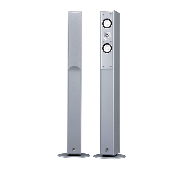 High quality sound and design featuring the metallic silver trim ring. No matter what the content, from movies to music, enjoy rich, spacious sound from this floorstanding speaker.