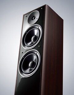 High quality sound and design featuring the metallic silver trim ring. No matter what the content, from movies to music, enjoy rich, spacious sound from this floorstanding speaker.
