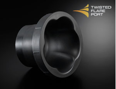 The all-new Twisted Flare Port takes advantage of extensive subwoofer development experience. The flared, gently twisting shape diffuses the vortex of air generated around the edge of the port, creating a smooth flow of air. This reduces extraneous noise not present in the original input signal and provides clear, accurate low frequency reproduction. From special effect sounds in movies to the atmosphere of a live venue, you hear bass that is clear, tight and realistic.
