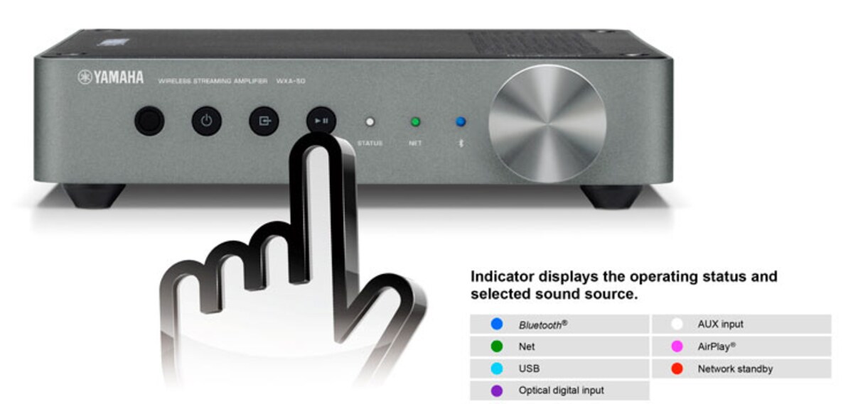 The WXA-50 reaps the benefits of Yamaha’s advanced audio technologies and circuit designs. The preamp circuitry, for example, minimises digital jitter and uses the same high performance ESS DAC that is found in high-end AV receivers. Yamaha’s proprietary power supply ground configuration, called DAC on Pure Ground, ensures that the power supply will never negatively affect sound quality. The 48-bit digital volume control provides much greater precision and quality that conventional digital or analogue controls. In addition, a highly rigid, metal chassis supplies the stability necessary for powerful, clear music reproduction.