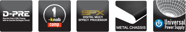 - Mic preamp kelas A “D-PRE” dengan sirkuit inverted Darlington untuk suara berkualitas studio.