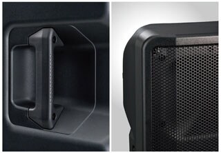 - Jaring-jaring bagian depan mendukung penguatan suara dengan penutup dan menjamin pendinginan amplifier