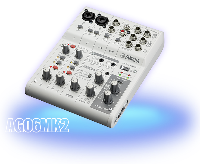 Mixer livestreaming 6 channel dengan loopback, DSP, line dan Hi-Z input.