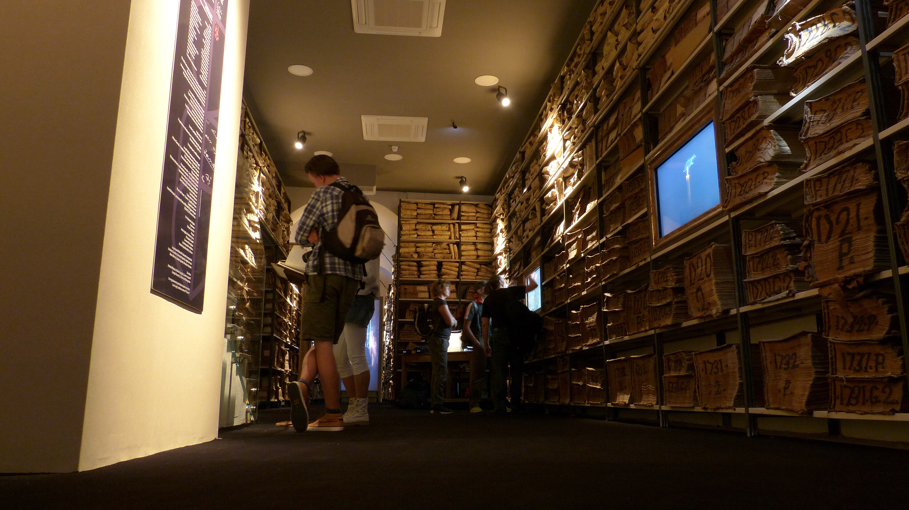 The A/V elements are activated by interactive buttons and hidden triggers. These include a book which, if the pages are turned, activates a video. The audio includes sounds from the past (the scratching sound of writing, people talking about the transactions, etc), historic sounds of the city (such as the noise of earthquakes caused by the nearby volcano Vesuvius) and narrators telling stories about the exhibits.