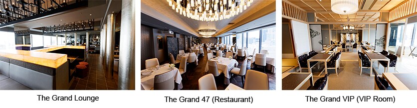 The idea of using the entire 5,000 square meters for one big restaurant seemed inappropriate to us, so we broadly divided the area into two main functions: a city hotel type lounge where adults can gather fulfills the “Ginza Lounge” function, while areas that offer cuisine fulfill the “Japan trends and culture communication” function. There are a number of separate spaces on our floor. The Grand Lounge, for example, is an ideal meeting place for people visiting the Ginza. The Grand 47 restaurant offers a broad experience in Japanese cuisine using produce and specialties from all of the country’s 47 prefectures. The Grand VIP is a luxury VIP room that offers adults a taste of refined Japanese style with an attached contemporary tearoom, and is probably the only space of its kind in the Ginza. Then there is the Ginza Kiwami, a counter-style “chef’s table” with just 12 seats that serves French cuisine.