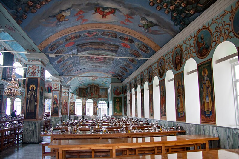 Biara ini pada awalnya didirikan pada abad ke-11, dengan banyak kompleks yang dibangun di lokasi terdekat, yang lebih dekat ke laut, antara tahun 1812 dan 1821. Sampai saat ini, biara tersebut merupakan biara terbesar di semenanjung Gunung Athos dan bangunannya yang memiliki beberapa tingkat dan kubah yang tinggi memberi kesan sebuah kota miniatur. Tradisi Cenobit-nya mengikuti praktik monastik kehidupan masyarakat yang teratur. Bagian penting dari semua ini yaitu waktu makan di saat setelah berdoa di gereja, para pendeta dan peziarah berkumpul di ruang makan untuk makan sambil membaca naskah suci dari Alkitab.