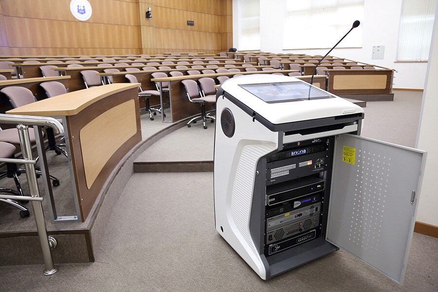 “Singkatnya yaitu untuk menyediakan ruang belajar dengan sistem audio yang mempertimbangkan desain dan karakteristik akustik berbeda dari setiap ruang, dimana memberikan cakupan suara yang seragam dan memastikan setiap mahasiswa merasakan audio berkualitas tinggi yang sama," kata Tn. Ilshat Kallimulin, engineer proyek utama ShowPro, yang telah merancang dan mengimplementasikan sistem.