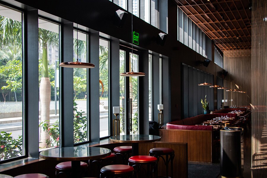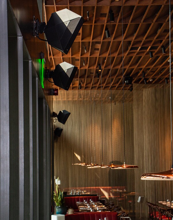 Pencahayaan yang ringan, dapur terbuka dan ruang bar dipercanggih dengan musik latar dan tata akustik berkualitas tinggi, keduanya didesain oleh Mr. Kapil Thirwani dari Munro Acoustics. Memahami demografi pengunjung restoran yang cukup unik, ia mendesain lingkungan audio yang akan meningkatkan pengalaman fine dining mereka. Ia memilih Yamaha dan NEXO karena ia tahu keduanya akan menghasilkan suara yang luar biasa, dengan biaya yang ekonomis.