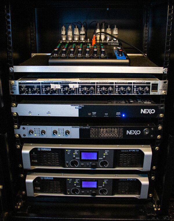 Desain ini dilengkapi oleh sepasang subwoofer Yamaha CXS15 XLF, yang didayai oleh amplifier PX5. Penuh dengan fitur-fitur canggih seperti rentang frekuensi rendah yang lebar, kejernihan terbaik di kelasnya, dan memiliki 133dB SPL, CXS18 XLF yang ringan namun kokoh dan kemampuan processing PX5 yang cerdas menjadikannya solusi yang sangat cocok untuk instalasi high-end. Input sistem dikelola oleh mixer Yamaha MG10 yang dipasang di rak kontrol bersama amplifier.