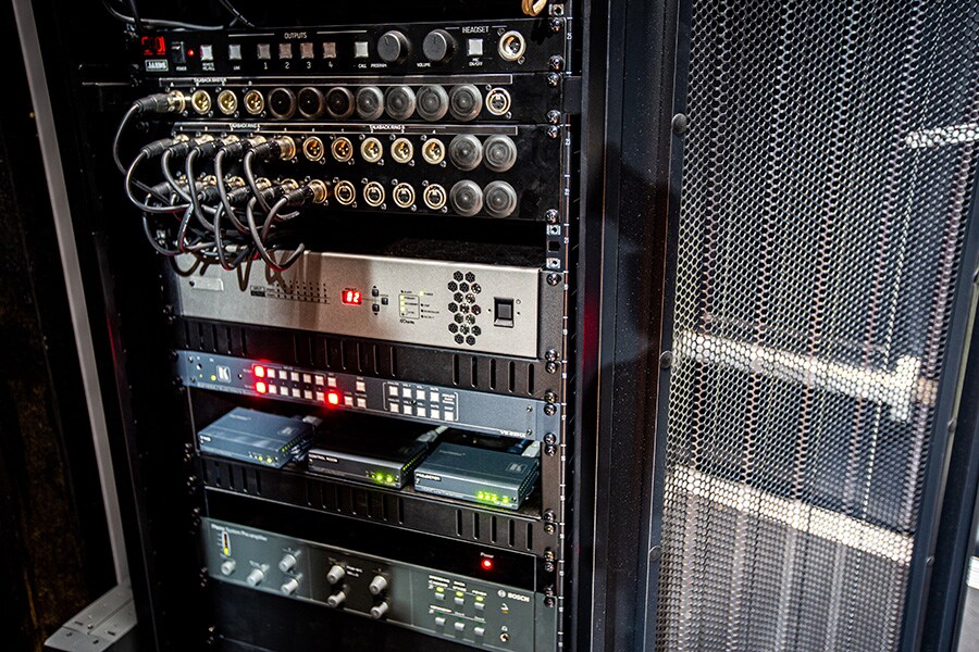 Audio tersedia dalam dua mode. Mode dasar dikontrol dari panel sentuh di samping panggung dan lokasi bio box utama, yang membuat pengguna dapat mengendalikan tiga buah mikrofon nirkabel, video dan pencahayaan. Mode tingkat lanjut mengontrol konsol Yamaha TF5, poin-poin patch di seluruh tempat acara dan empat buah mikrofon nirkabel.