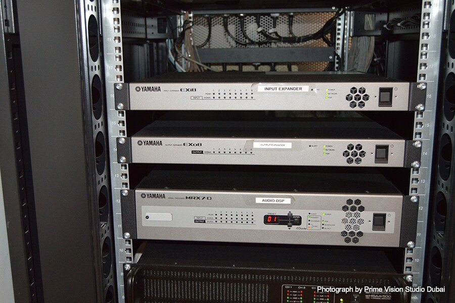 Signal Processor MRX7-D yang terpasang di rack bersama expander input/output EXI8 dan EXO8