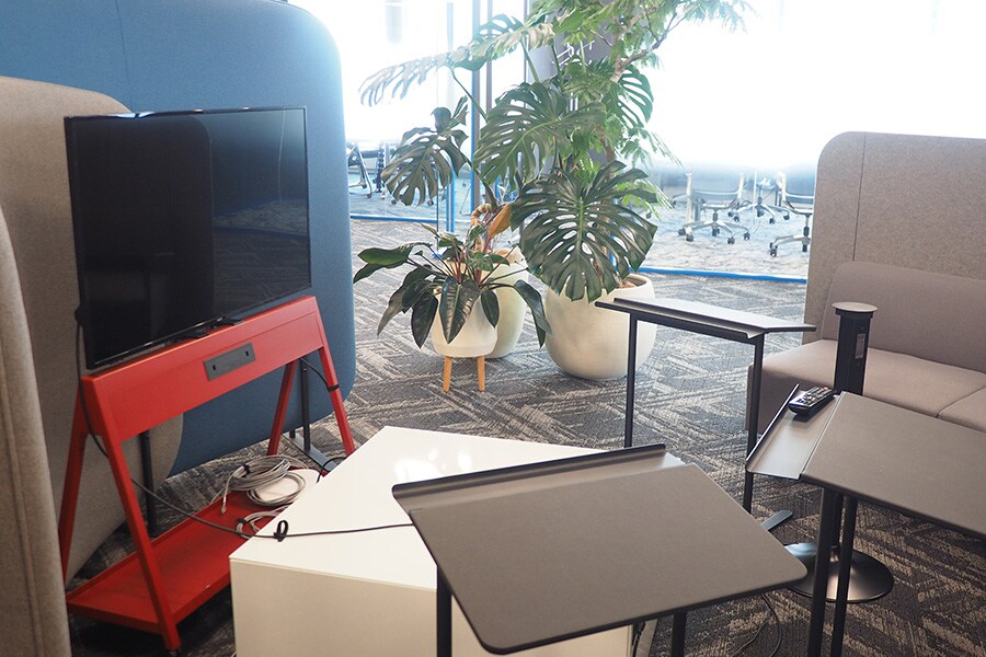 Tn. Tsunemi: Karena ruang inovasi terbuka adalah ruang besar dengan hampir tidak ada dinding di lantai itu, saya ingin menerapkan beberapa bentuk zonasi untuk mencegah suara menyebar terlalu jauh. Sistem ini menggunakan speaker yang dipasang di plafon dan disusun sedemikian rupa sehingga mencapai volume yang dibutuhkan untuk area yang diperlukan.