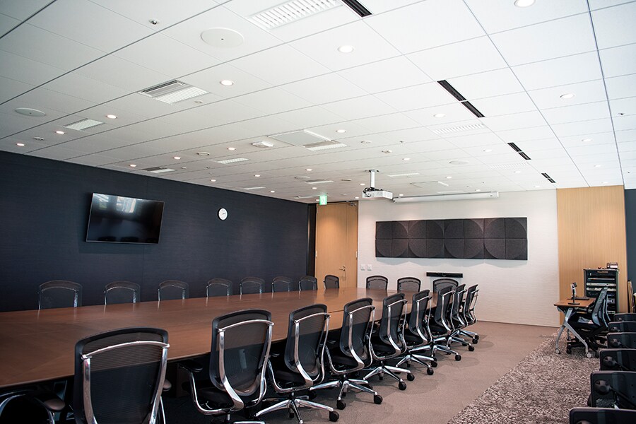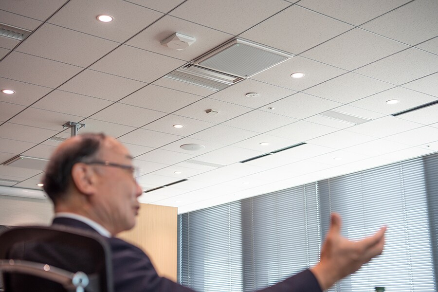 Tn. Takeyama: Pertama-tama, saya memilih speaker ini karena tampilannya. Saya memilih speaker ceiling yang dipasang di plafon sehingga orang-orang di ruang konferensi akan sedikit menyadari adanya peralatan audio. Selain itu, speaker plafon menghasilkan suara yang seragam di dalam ruangan dengan menentukan lokasi pemasangannya. Dengan menggunakan mikrofon ceiling dan speaker ceiling, orang-orang yang berpartisipasi dalam konferensi web akan menikmati bunyi yang ditangkap dan dibunyikan secara seragam l di mana saja mereka duduk, baik di kepala atau kaki meja.