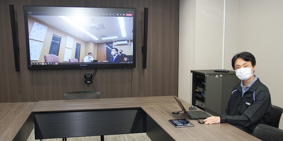 Toyoura: Anda dapat mengombinasikan solusi video Barco dengan audio Yamaha secara aman di sistem telekonferensi jarak jauh. ClickShare dari Barco dan YVC Series dari Yamaha membentuk aliansi kemitraan pada tahun 2020; ADECIA bergabung dengan aliansi tersebut pada bulan September 2021. Umumnya, produsen tidak menjamin pengoperasian produk pihak ketiga, tetapi ADECIA dan ClickShare saling memeriksa satu sama lain, sehingga kami dapat membangun sistem dengan penuh percaya diri.