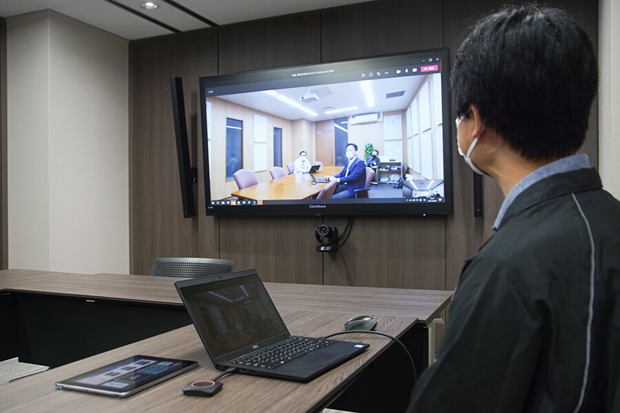 Toyoura: Biasanya telekonferensi jarak jauh menggunakan monitor komputer, mikrofon, dan kamera, dan meluncurkan aplikasi telekonferensi jarak jauh seperti Zoom dan Microsoft Teams atau sejenisnya yang dipasang di komputer. Namun, jika Anda ingin menggunakan monitor eksternal, mikrofon, dan kamera, komputer host dihubungkan menggunakan kabel. Bahkan saat menggunakan "ADECIA", prosesor dan komputer ADECIA harus dihubungkan menggunakan kabel melalui USB. Namun, prosesor biasanya berada di rak di sudut ruang telekonferensi. Oleh karena itu, Anda harus sedikit membentangkan kabel USB dari rak ke komputer, dan Anda juga harus membentangkan kabel HDMI untuk berbagi layar komputer.