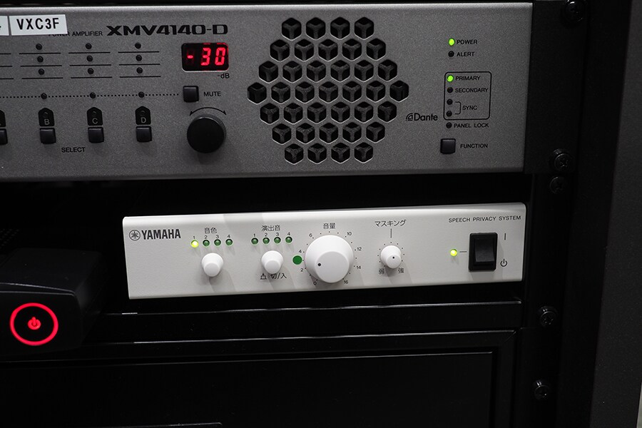 Selain "ADECIA", ruang peragaan juga dilengkapi dengan sistem speech privacy yang disebut "VSP-2" yang membunyikan suara masking untuk melindungi kerahasiaan percakapan dan untuk menyediakan lingkungan kantor dimana Anda dapat berkonsentrasi pada pekerjaan. Kami juga menunjukkannya.