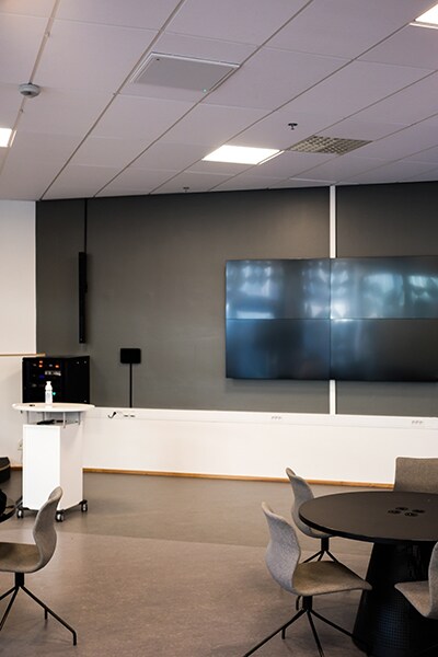 Knutsson: Sebelum Pandemi, BTH melihat bahwa ini merupakan cara yang mungkin akan terjadi; Kami akan mengadakan lebih banyak pendidikan jarak jauh, mungkin akan ada lebih banyak pengajaran hybrid, dan sebagainya. Kami telah membicarakan hal ini, dan kami memikirkannya – tetapi kemudian Pandemi datang, dan semuanya berjalan lebih cepat. Kami harus beradaptasi dengan situasi yang kami hadapi. Lalu kami melihat bahwa kami harus memiliki ruangan yang membuat pendidikan jarak jauh lebih mudah dikelola, kami harus mengelola pendidikan jarak jauh di ruangan besar tempat Anda harus memiliki hasil suara yang bagus, kamera yang bagus – lingkungan teknis yang bagus, dan harus mudah digunakan oleh setiap pengajar. Setelah itu, kami mulai berpikir tentang mikrofon ceiling, kamera apa yang dapat kami gunakan, platform apa yang dapat kami gunakan, dan sebagainya.