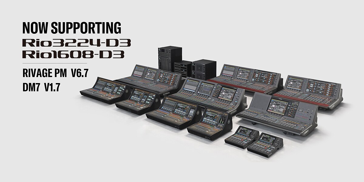 Selain mendukung Rio-D3, V6.7 dari RIVAGE PM series menambahkan perangkat Digital Audio Labs Livemix PRO Personal Monitor System ke dalam daftar Perangkat yang Didukung Dante. Sementara itu, DM7 V1.7 mendukung interface card audio Waves WSG-PY64 dan menambahkan model Shure SLX-D Quad ke dalam daftar Perangkat yang Didukung Dante.