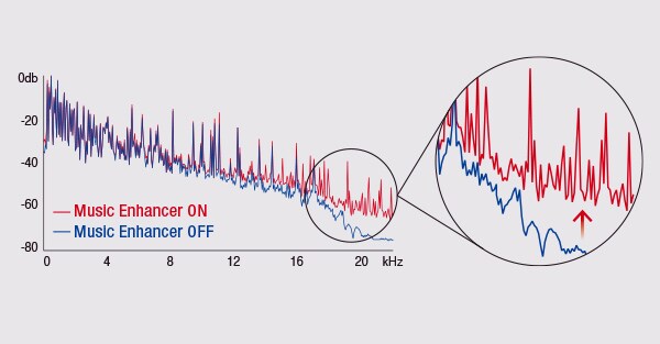Ketika musik diuraikan menjadi format digital yang terkompresi seperti MP3, respon frekuensi akan sangat berkurang. Teknologi Yamaha’s Compressed Music Enhancer menggunakan proses signal digital yang sangat luar biasa dengan kalibrasi algoritma yang tepat untuk menghadirkan kembali frekuensi yang telah hilang/dikurangi tadi, sehingga musik akan terdengar dengan maksimal seperti aslinya.