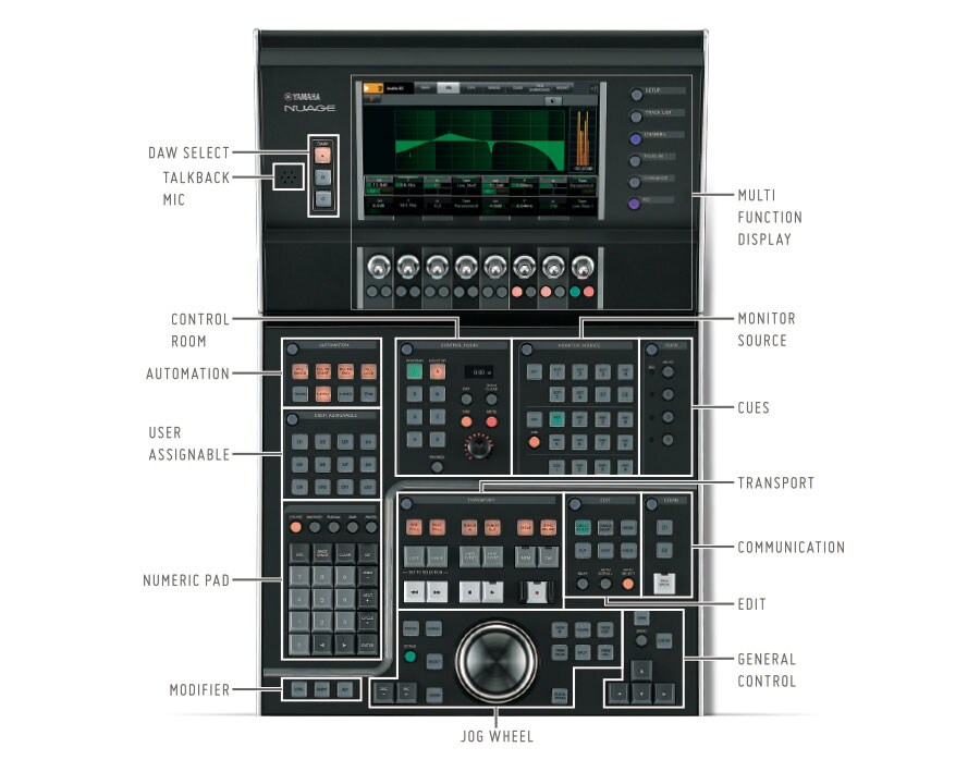The Nuage Master unit touch-screen Multi Function Display allows finger tip access to all record, playback, mix, edit, monitor, and preference parameters. It is an ideally designed sub-display that offers highly efficient workflow support.