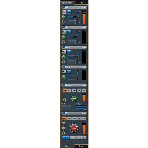 The Nuendo/Cubase Control Room feature replicates large-console monitoring facilities in software. Control Room is faithfully recreated on the Nuage Master panel, providing a full-function monitoring and communication environment without having to add extra equipment.