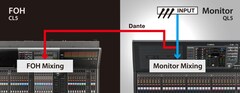 The ability to directly connect input ports to output ports without going through mixing channels provides unprecedented freedom for routing signals between the analog, Dante, and MY slot inputs and outputs. For example, a QL console could be used as an I/O device for another QL or CL series console while simultaneously functioning as a monitor console. Not only is just one QL console required for both monitor and I/O use, but analog gains can be remotely controlled from the front-of-house QL or CL console. It’s also possible to mix analog signals received at the console while directly transmitting them to a multitrack recording system via Dante, for example. The possibilities are vast.