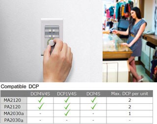 * DCP4V4S, DCP1V4S and DCP4S, up to two units in total, can be connected to MA2120 and PA2120. One unit of DCP1V4S can be connected to MA2030a.