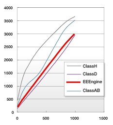 An advanced Yamaha switching regulator and high-efficiency EEEngine technology give the PC-1N Series amplifiers high-quality sound and exceptional power with dramatically reduced power consumption and a new compact size. The switching regulator stabilizes output voltage and current … even when line voltage varies … for maximum drive efficiency. This means that, unlike conventional linear power supplies that use a transformer, the switching regulator guarantees dynamic reproduction with faultless stability even at high output levels. This improved efficiency is also the key to other important PC-1N features such as reduced heat generation, longer component life, lighter weight, more compact dimensions, and lower power consumption. Expect clear, stable, high-quality sound in installed systems with long power cables as well as large-scale outdoor live sound applications with unstable primary power sources. EEEngine technology further reduces power consumption without sacrificing sound quality. An independent auxiliary power line and high-speed voltage buffer guarantee split-second response to fast sound transients. New MOSFET (Metal Oxide Semiconductor Field Effect Transistor) circuitry in the high-efficiency current buffer boosts PC-1N Series efficiency by as much as 200% - that's 50% lower power consumption - over conventional class-AB amplifiers. * The PC9501N, for instance, draws a mere 950 watts of power with both channels driven at maximum power into 4-ohm loads. * Comparison with previous Yamaha class-AB amplifiers.