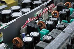 XMV amplifiers feature an innovative, new, patent pending circuit that improves the already highly efficient Class D circuit topology, bringing the efficiency level of the amplifier's output stage up to over 90%. This is achieved by automatically switching the circuit to match the corresponding output voltage. In high-impedance connections, both 70V and 100V operation can be achieved since the circuit is already capable of operating in high voltages. However, using the same circuit in lowimpedance operation can mean excessive energy loss, so by automatically switching to a lower voltage drive, efficiency is improved significantly without sacrificing crucial aspects of the amp's performance such as keeping the distortion levels to a minimum.XMV power amplifiers also feature a new switching power supply equipped with Power Factor Correction, which ensures harmonic control and decreases the amount of current draw dramatically, yet still maintains the same output power. This makes circuit breakers less prone to shutting down, as well as eliminating the need for thicker, heavier cables or a larger, more powerful system.