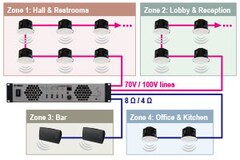 The newly developed Double Power Mode function effectively doubles the output power of selected channels in order to drive speakers with higher output power. This means that speakers with varying output capacities can be powered simultaneously by the same amplifier, adding flexibility to system design and configuration.*The number of channels that can be used will be reduced to half