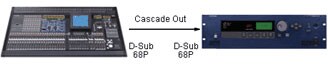 The DME64N has four rear-panel expansion slots that accommodate Mini-YGDAI I/O cards, and the DME24N has one expansion slot. Each slot supports up to 8 analog inputs or outputs when fitted with precision A/D or D/A cards, or up to 16 channels of digital I/O in AES/EBU, ADAT, or TASCAM format. With it's four expansion slots the DME64N can support up to 64 channels of I/O, while the DME24N has a single slot plus 8 channels of built-in analog I/O for a total of 24 channels. For even larger systems up to eight DME64N units can be cascaded to provided a massive 512 digital inputs and 512 digital outputs, or 128 analog inputs and 128 analog outputs.