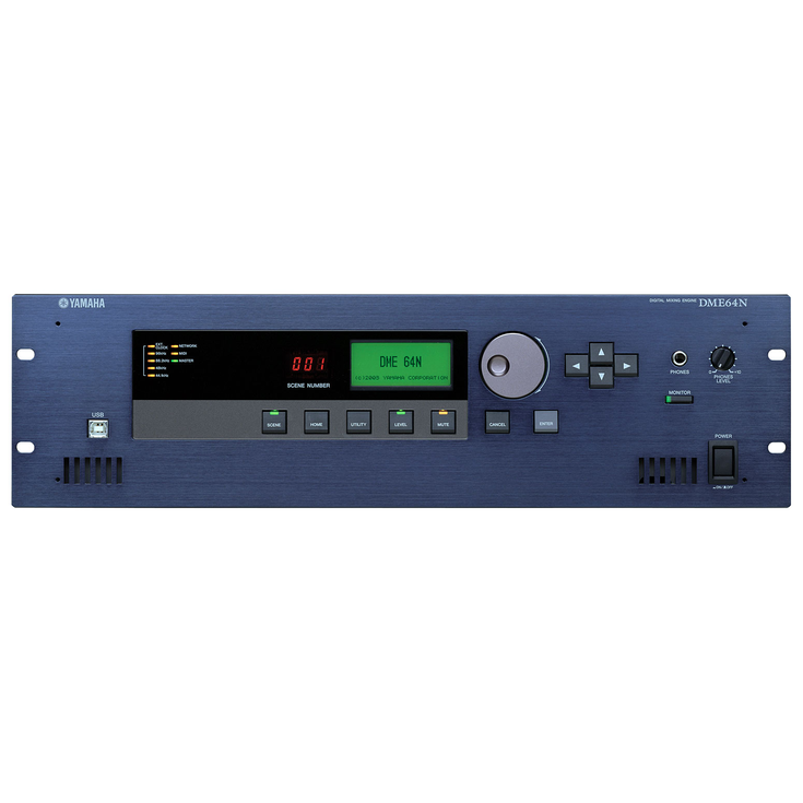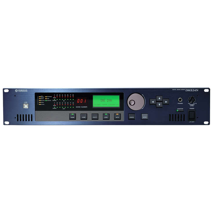 The DME64N and DME24N employ Yamaha's original DSP6 and DSP7 signal-processing LSIs for extraordinary audio processing power and quality. The DME64N offers processing power that is on a par with Yamaha's DM1000 Digital Mixing Console, and the smaller DME24N has about half that processing capability while offering built-in analog I/O for simple, more compact systems. In either case you get a remarkable amount of processing capability that allows complex systems to be built around a single DME unit and fine tuned for optimum performance in concert halls, multi-purpose halls, event spaces, institutions, and a wide range of other applications. Plenty of DSP power also means that advanced configurations that previously required multiple hardware units can now run comfortably on just one DME64N or DME24N. All of this translates into significant time, energy, and cost savings for the design, installation, and operation of DME-based systems.