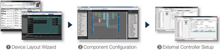 As the scale and control requirements of an audio system grow, the number of devices required and overall complexity increase correspondingly. With the MRX7-D and dedicated MTX-MRX Editor software, input and output devices can be quickly arranged via a software wizard and internal MRX7-D processing components can be combined as needed. One simple software application provides everything needed for comprehensive system design and management.