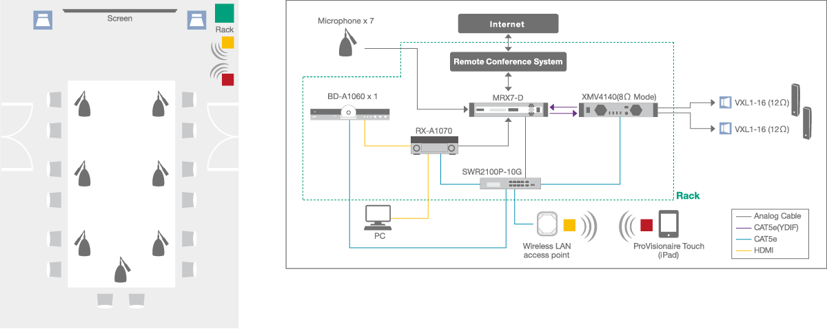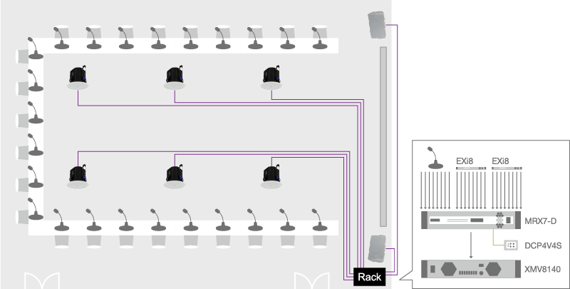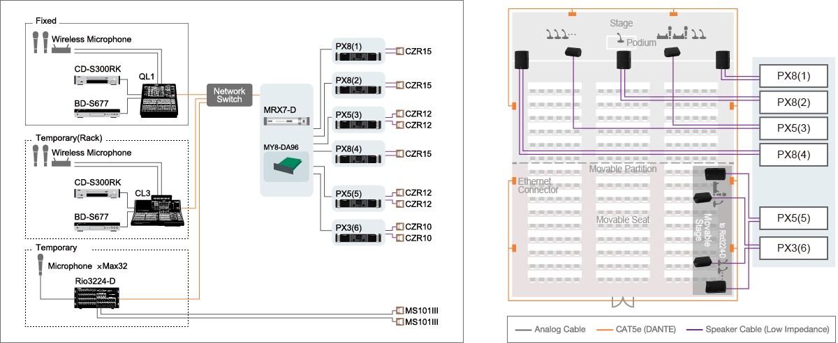 Using two types of networking in MRX7-D can significantly reduce installation cost and time. The combination of YDIF for shorter system connections and DANTE for larger installations can considerably improve design flexibility.