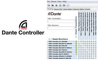 Tombol Dante Controller di bagian atas interface Yamaha LAN Monitor memungkinkan Anda menjalankan Dante Controller dengan sekali klik (perangkat lunak Dante Controller harus diinstal pada komputer). Perpindahan yang lancar antara Yamaha LAN Monitor dan Dante Controller menyediakan kontrol jaringan Dante total dari satu komputer.