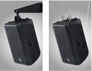 DBR loudspeakers come equipped with M8 rigging threads, allowing for rigged applications with optional speaker brackets or standardized eye-bolts.