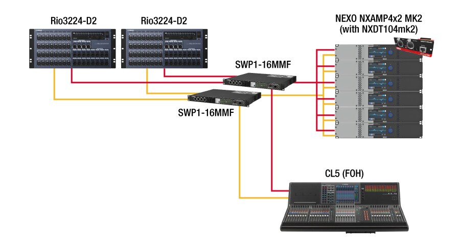 Pengiriman dan penerimaan audio mengikuti routing yang ditetapkan oleh pengguna terlepas dari mana perangkat Dante dihubungkan di dalam jaringan.