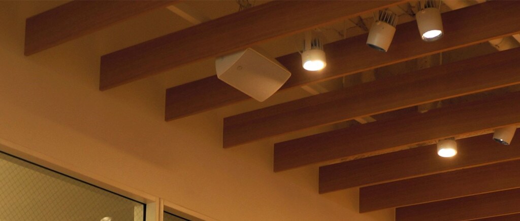 「スピーカーの設置」では、店舗内に設置するスピーカーのタイプを検討します。ここでは内装デザイン、設置場所の制約などを考慮する必要があります。