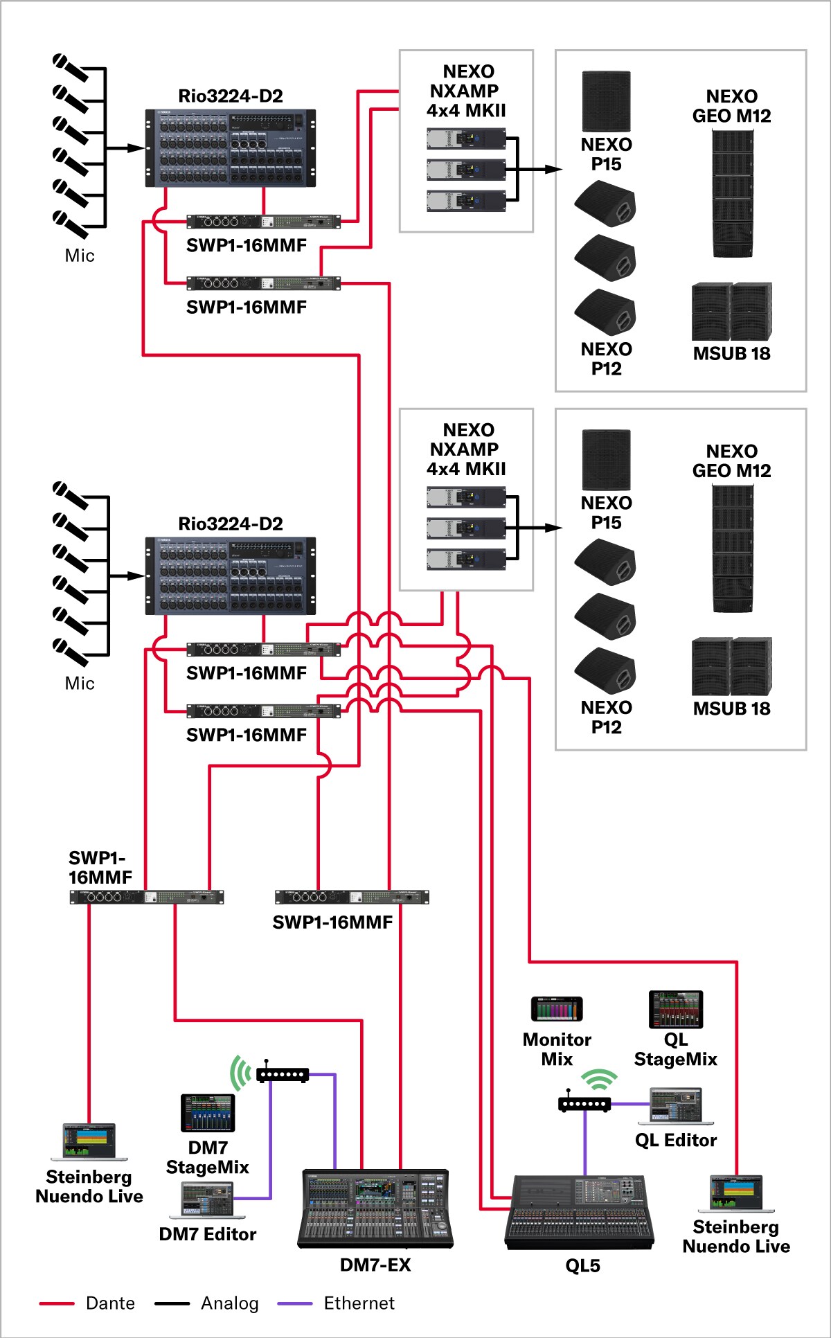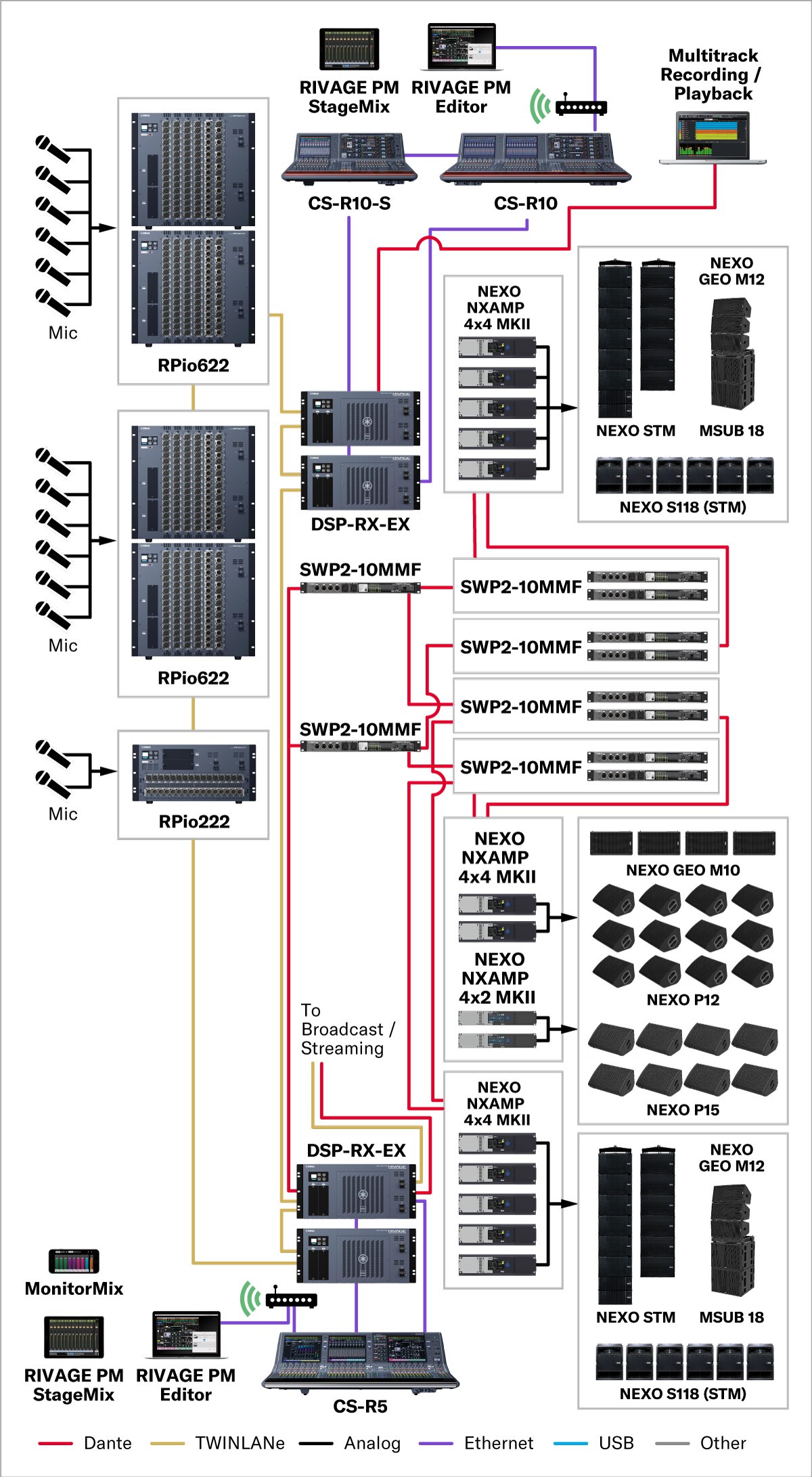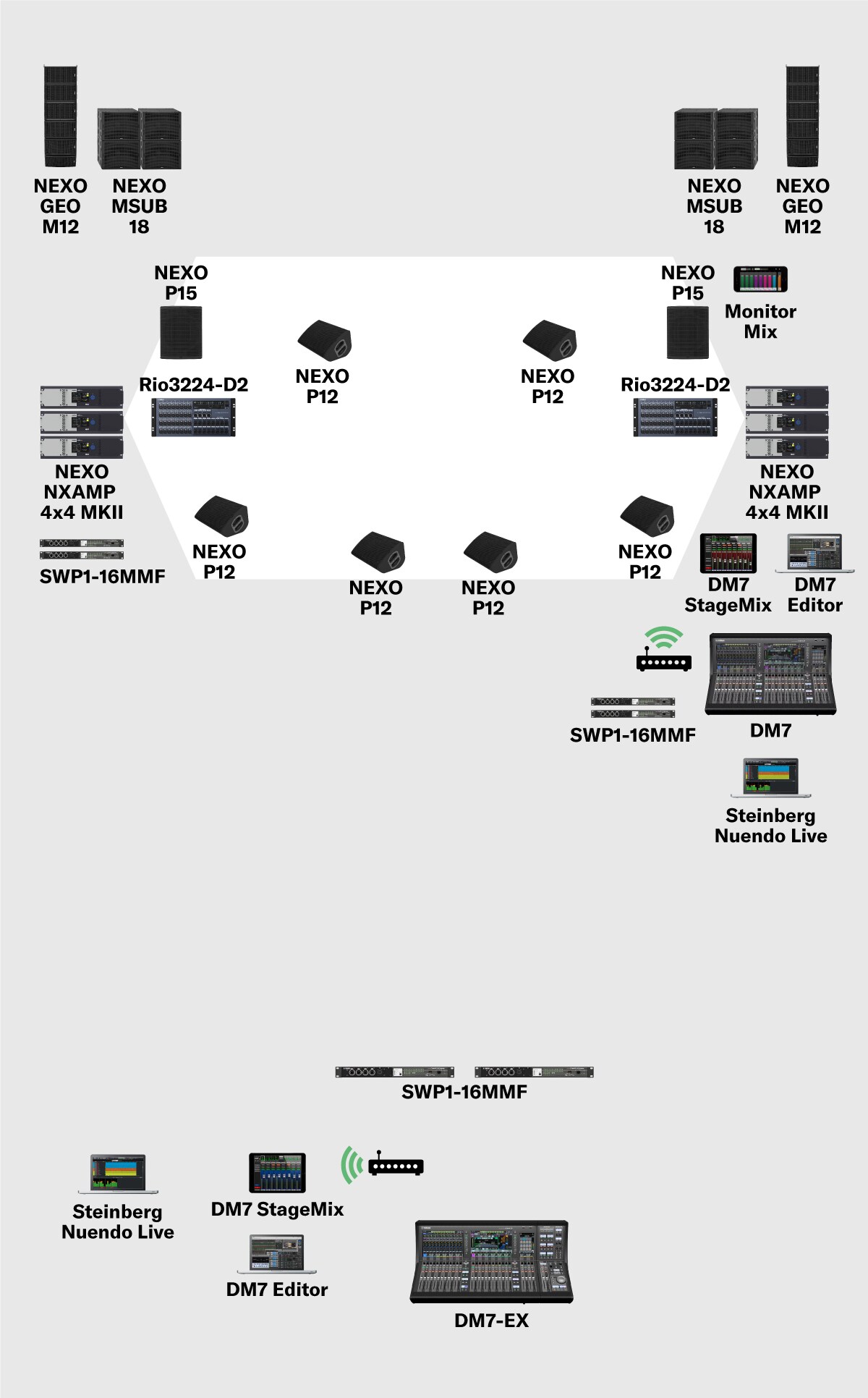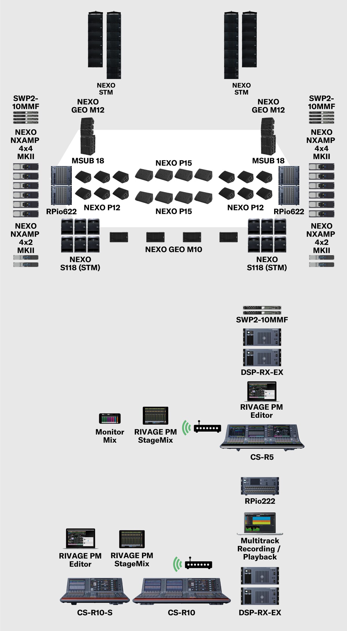 Sistem ini dirancang untuk tempat acara luar ruangan yang besar dengan tempat duduk lebih dari 5.000 orang. Loudspeaker berdaya tinggi dan berkualitas tinggi menghasilkan suara yang konsisten dari depan hingga belakang tempat acara, dan konsol mixing 288 channel dapat mengakomodasi ansambel dan orkestra terbesar sekali pun. Sistem penguatan suara ini bukan hanya luar biasa dari segi kualitas dan fungsionalitas suara, tetapi juga dalam kemudahan pengoperasian dan redundansi sistem, sehingga memberikan keandalan yang penting untuk pertunjukan di mana membuat kesalahan bukan menjadi sebuah pilihan.