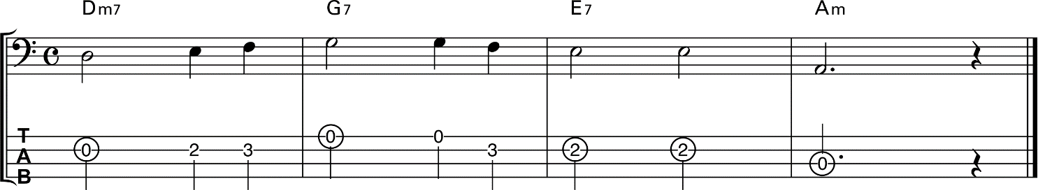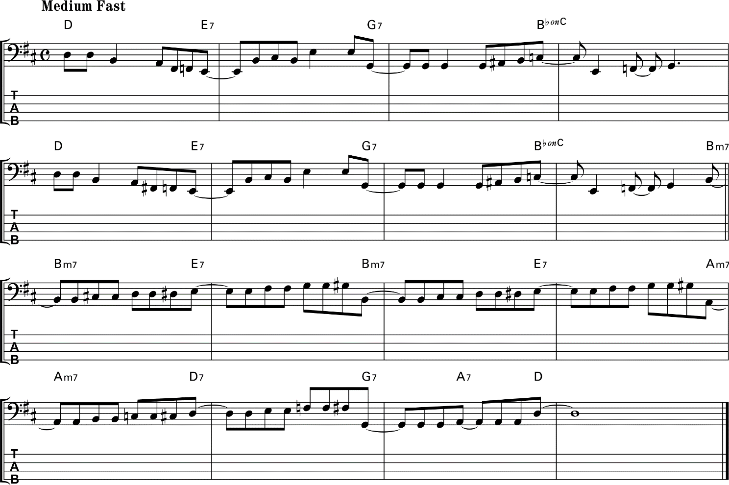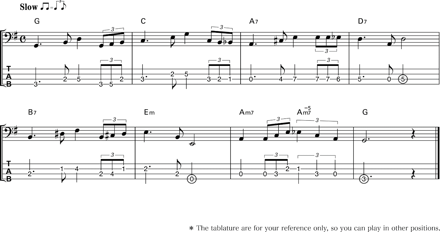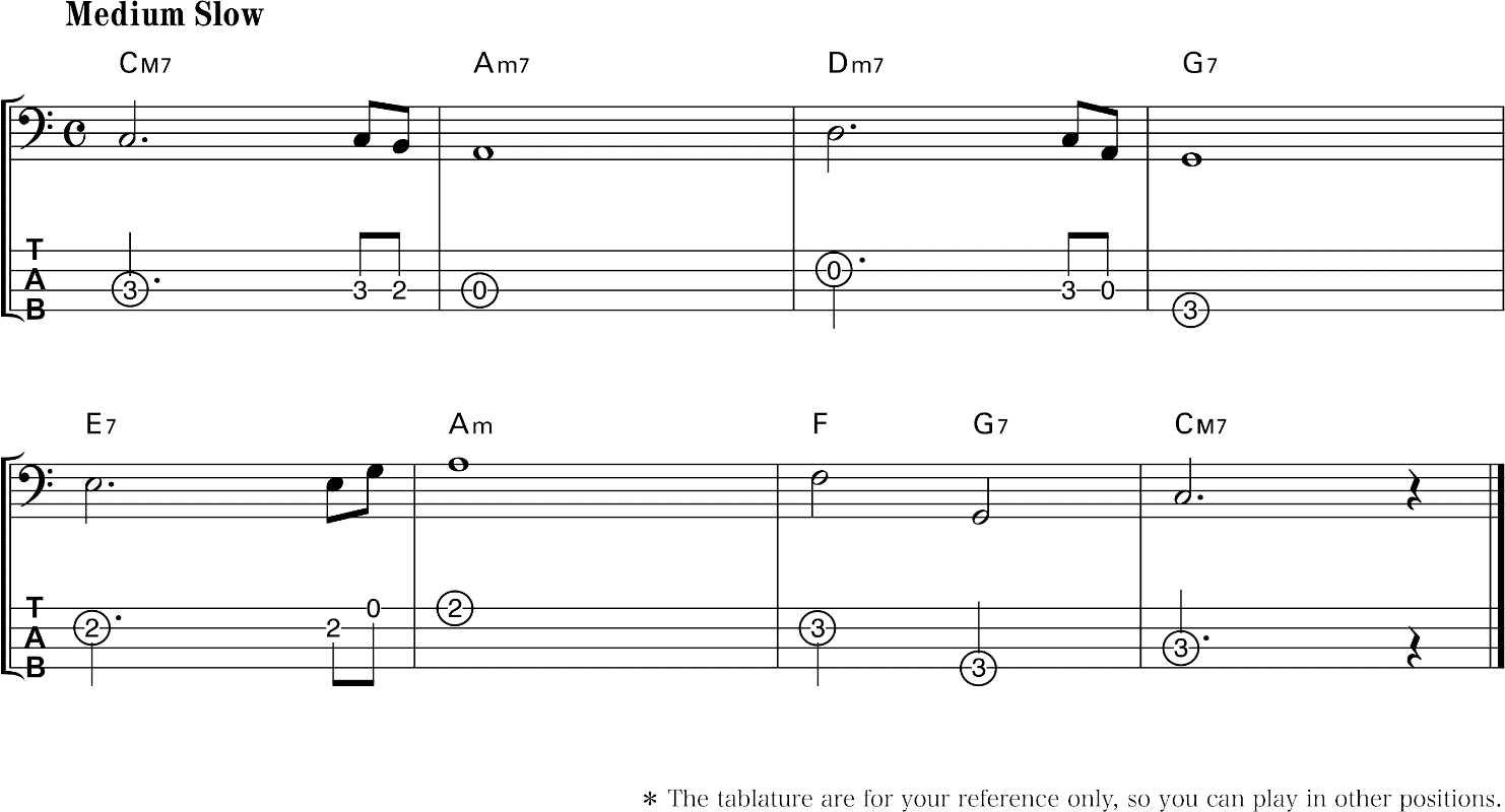 1. Penguji memilih satu pola Bass untuk dimainkan oleh peserta ujian.